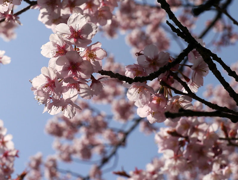 寒桜が園内の所々で満開です。もう、一部散り始めていました。